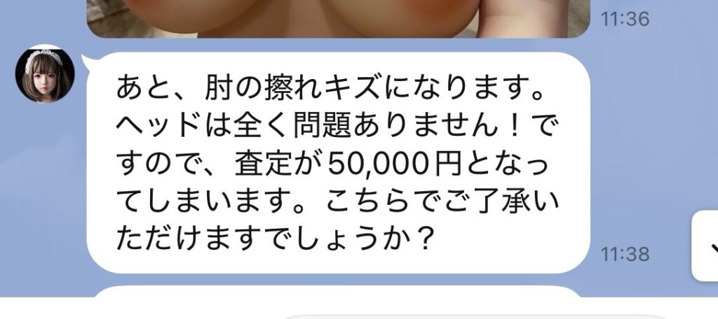 写真データを送ったのが夜19時、そして翌朝8時頃にはもう返事が来ていた、査定額は6万円とのこと。