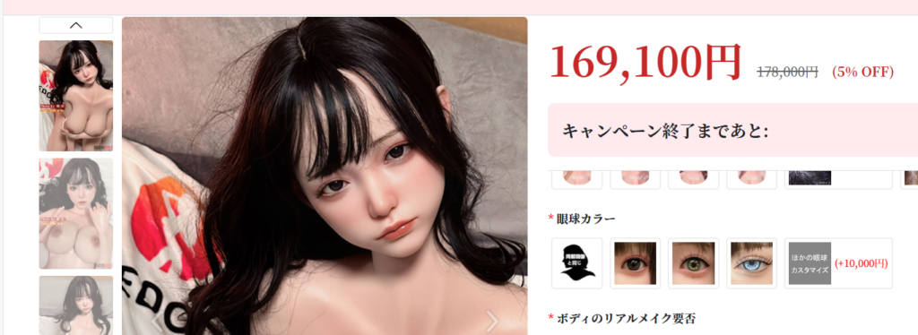 SHEドールは瞳のカスタマイズを商品ページでも選択できるようになっていた、カスタム例でハート目みたいのも作れる、…とどこかで見た気がする(ホント、記録しないと忘れるw)