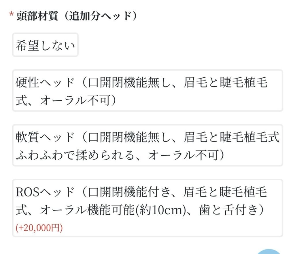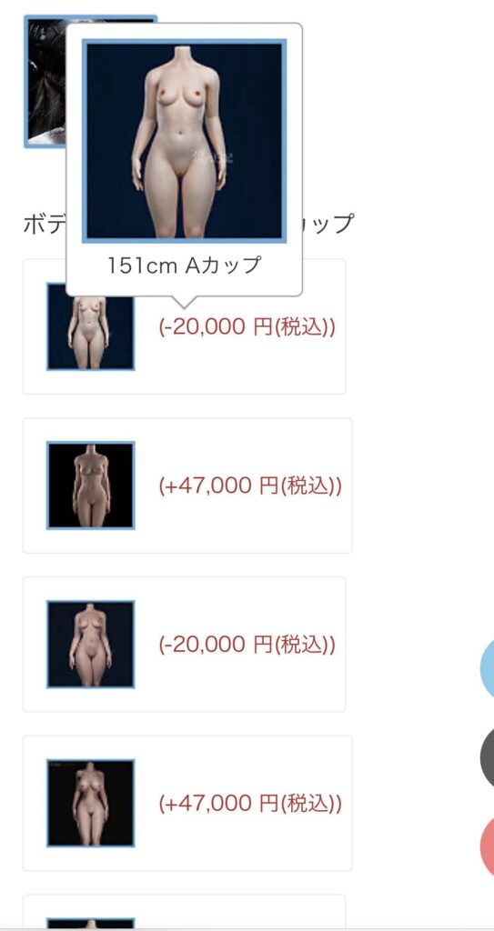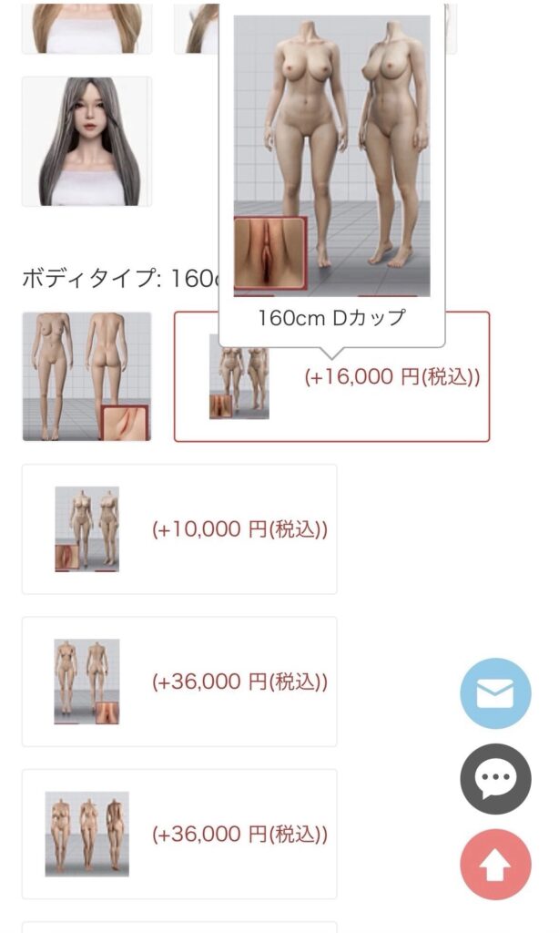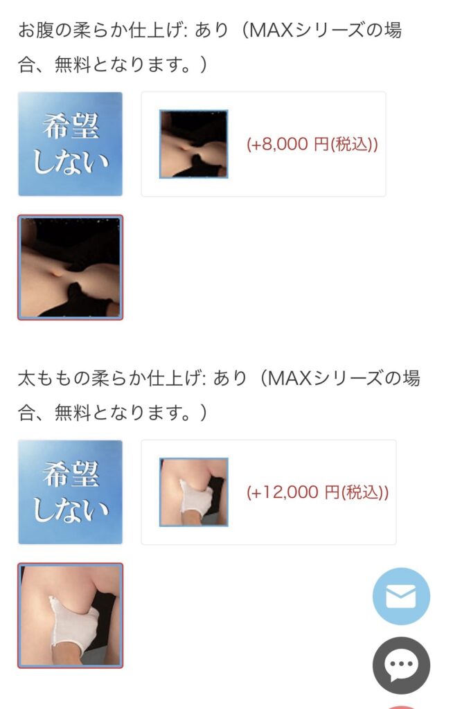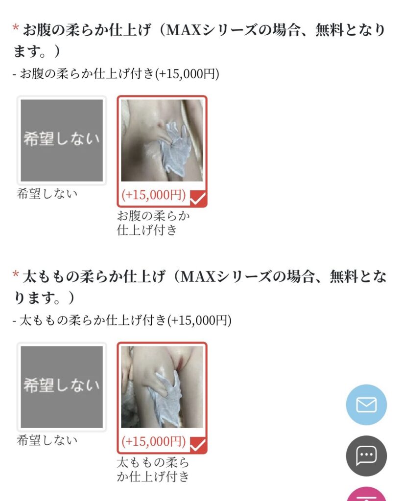 ↑胸と尻の柔らかさオプション、無料分は一緒の内容だったが、さらに一段階上のソフトゼリー仕様が選べるようになっていた、それぞれ